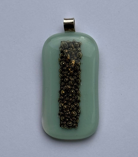 Mint Green Glass Pendant with solid silver finding and brass inclusion.