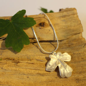 I make all my silver leaves from real leaves. I choose a suitable leaf and cover it with many layers of Silver Clay (for those who are unfamiliar with this, it is tiny particles of pure Silver which is bound in an organic binder). When I am satisfied that there are enough layers, the leaf is then fired in a kiln, burning away the leaf and leaving an exact imprint of the leaf. Each piece is unique and can take many hours to make.